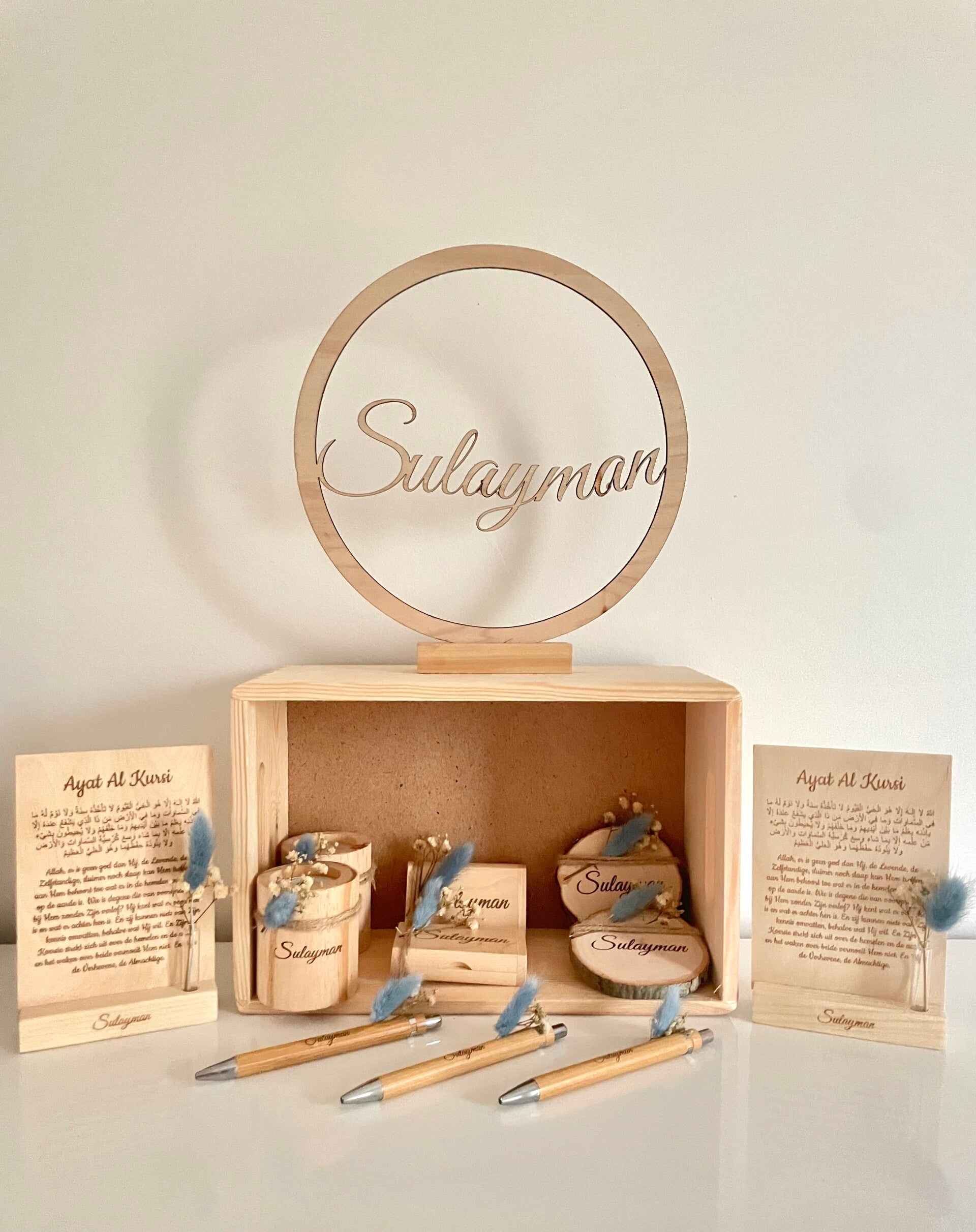 - 2 A6-borden met Surat Ayat El Kursi, elegant gepresenteerd in houders, voor een stijlvolle toevoeging aan elk interieur