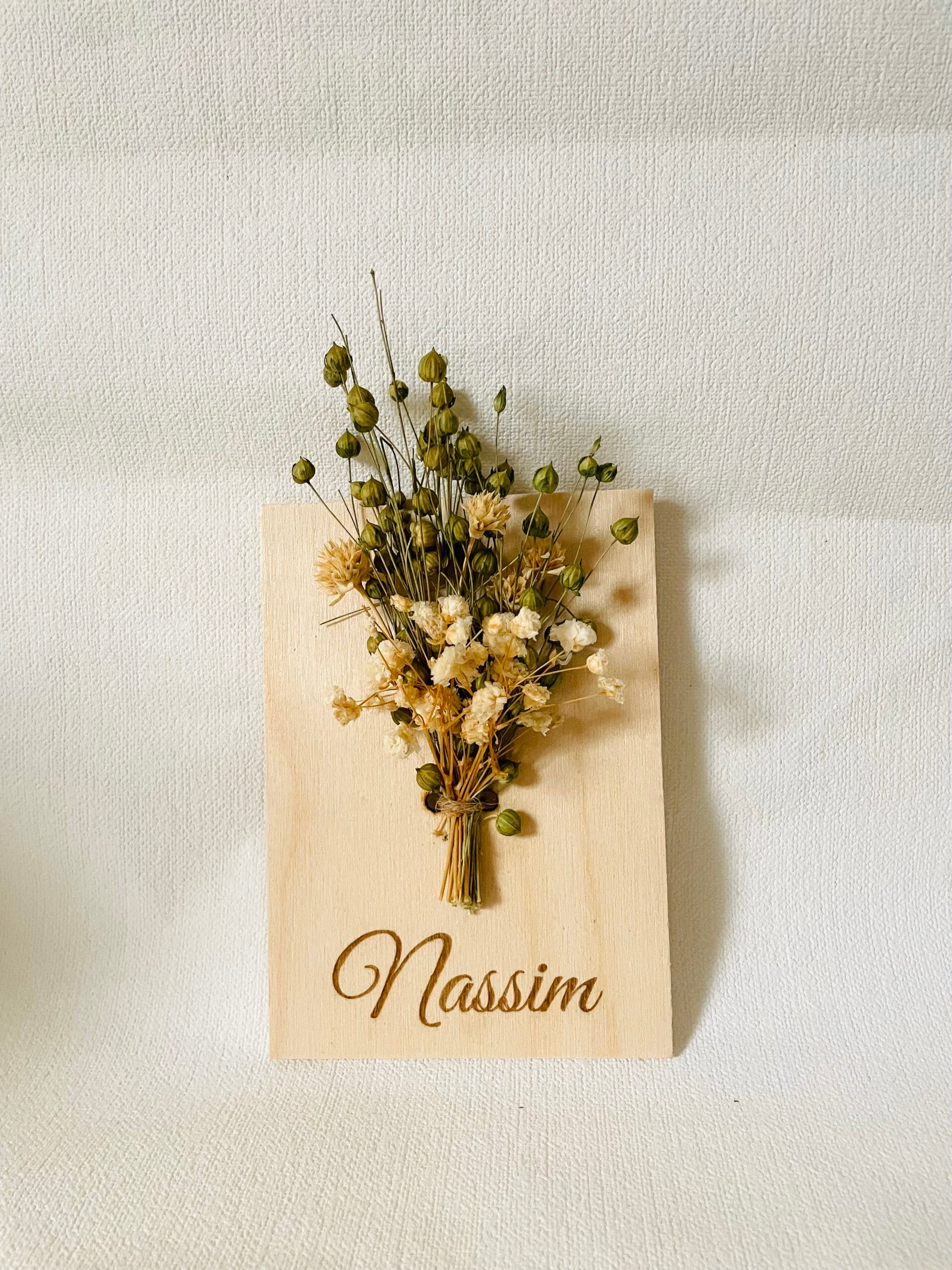 Deze houtenbord met droogbloemen kan voor verschillende gelegenheden als bedankje worden gegeven